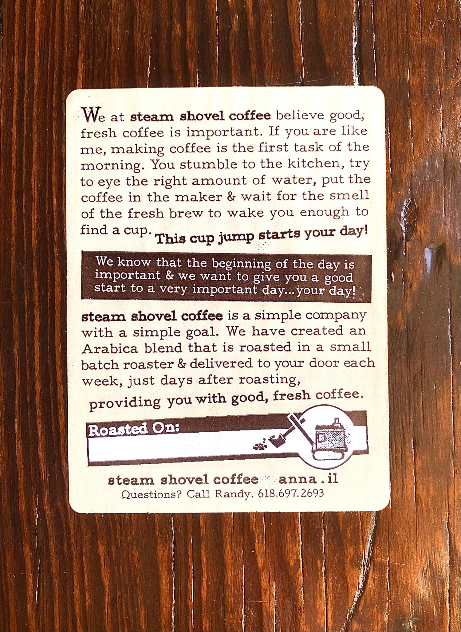 1 five pound bag of Steam Shovel Coffee
